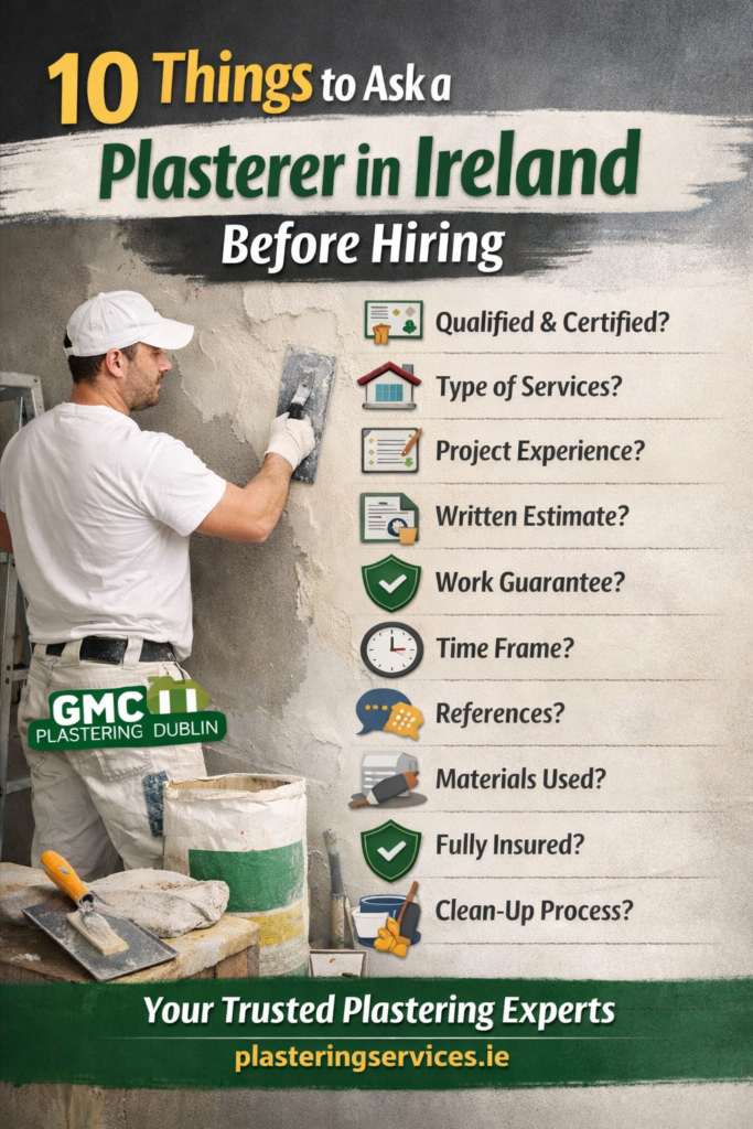 Hiring a professional plasterer is a crucial step in achieving the perfect finish for your home or commercial space. Whether you’re renovating a room, applying fresh plaster, or fixing damaged walls, ensuring you hire the right plasterer is essential for the success of your project. If you’re based in Ireland, particularly in Dublin, it’s important to do your research and ask the right questions before choosing a plastering company. Here are 10 things you should ask a plasterer in Ireland before hiring them, along with some tips to make sure you’re getting top-notch service.